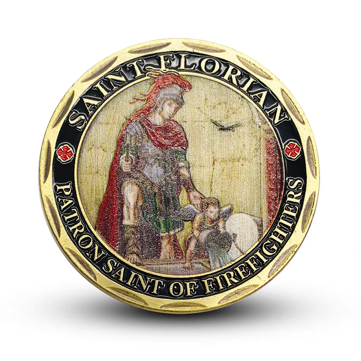 🔥 Saint of Firefighters: Saint Florian, the patron saint of fire service, watches over those who brave the flames. The religious imagery on one side connects modern firefighters to centuries of spiritual protection and divine guardianship.